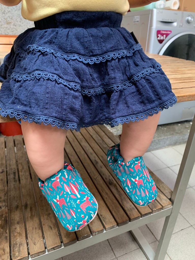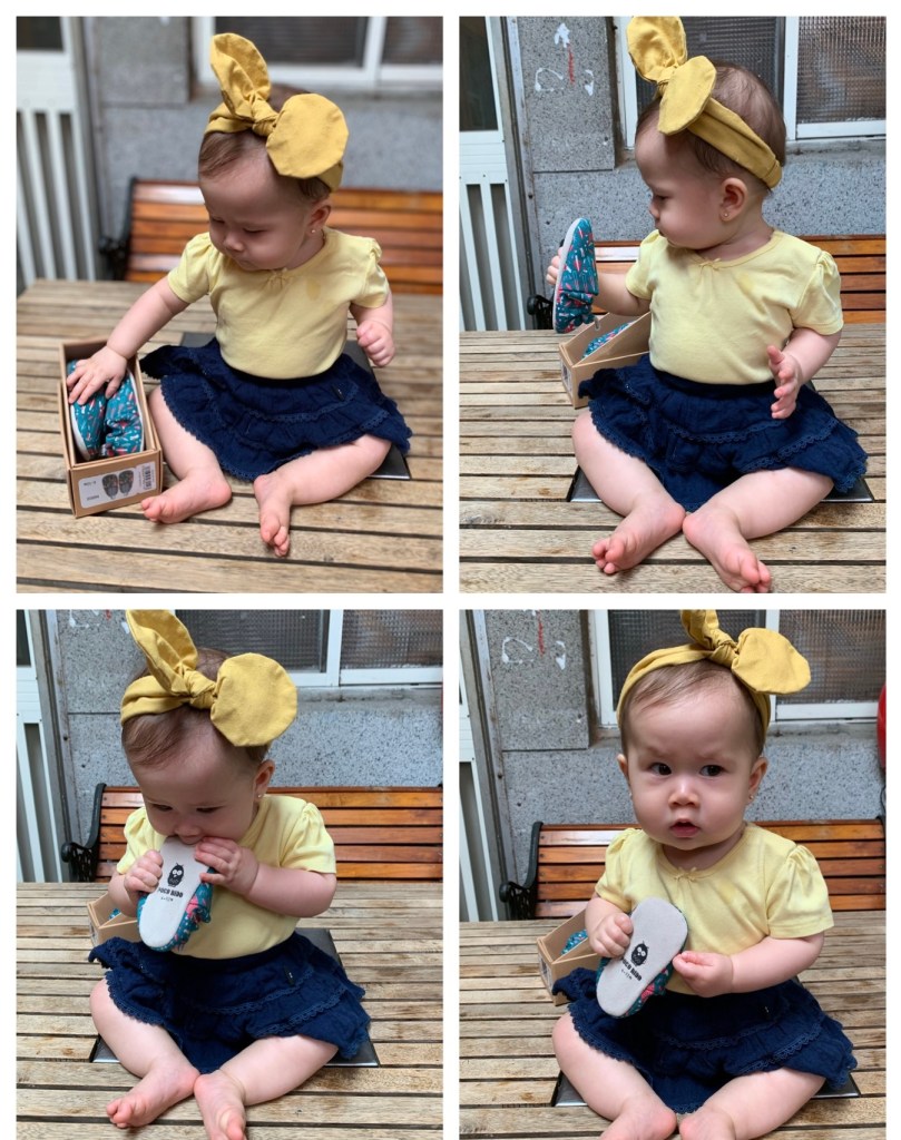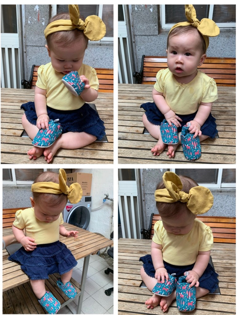 直到現在,時間過得好快,女兒滿七個月了🎉🎉🎉這幾個月來,媽媽我從來沒有停止購買女寶寶的服飾,所以衣櫃其實蠻可觀的⋯⋯鞋子的數量更不用說了,大概有近20雙吧(已被G先生唸一頓)但是,這眾多雙鞋中沒有一雙她可以穿超過十分鐘,因為Vala會用兩腳互相來回一直搓,鞋很容易就被她脫掉了。