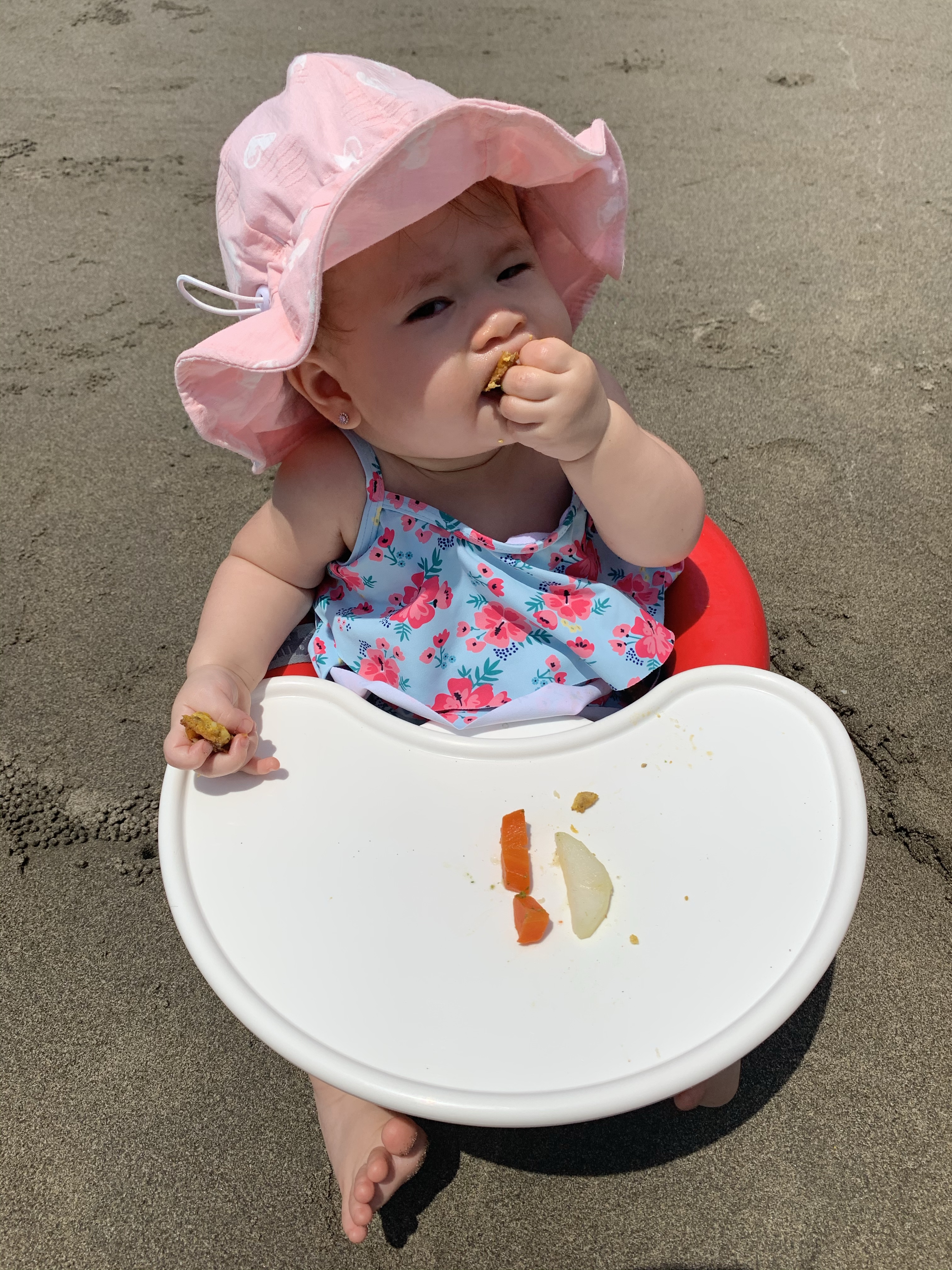 一到海邊,先開始餵食,再補強一次防曬,接著就下水玩去囉!很可惜這次我們一家子都玩得太快樂,忘記拍下女兒“第一次“進海水的照片。而Vala套著泳圈,也慢慢的在摸索並學會控制自己的身體重心,好棒❤️